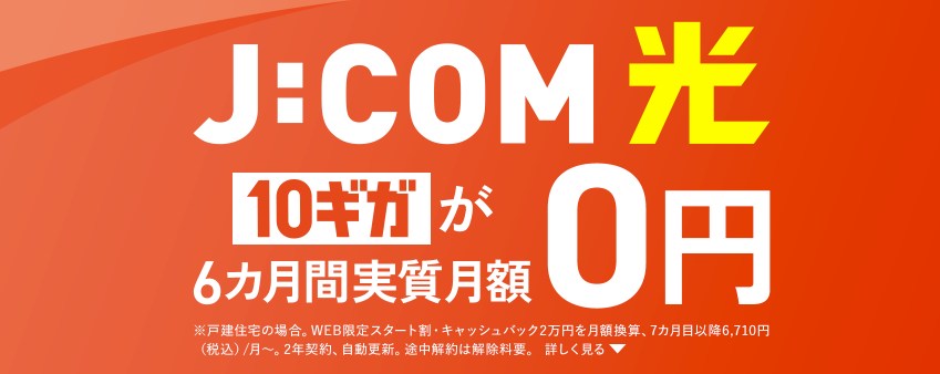 【解説】 「J:COM NET光 on auひかり」のプランであれば、auひかりと遜色ない高速通信が期待できます。地域によっては独自の同軸ケーブル(HFC方式)を利用したプランもありますが、速度を重視するなら光回線(FTTH)のプランを選びましょう。