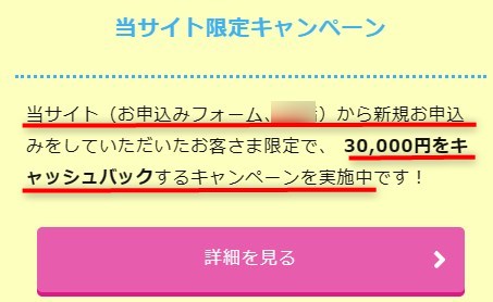 代理店経由で申し込むとさらに高額なキャッシュバックが受け取れる場合もあります。