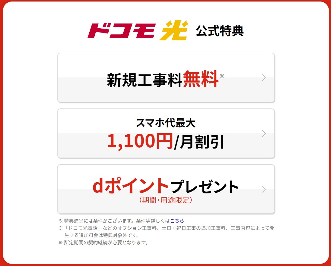 GMOとくとくBBからドコモ光を申し込むと、2025年4月現在で以下の特典が受けられます。