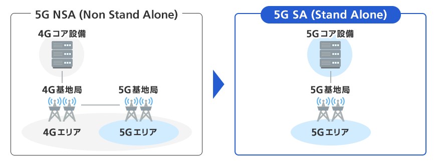 それが「5G NSA(今までの5G)」と「5G SA(これからの5G)」です。