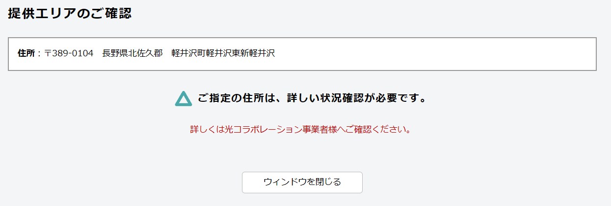残念ながら光回線のエリア外だった
