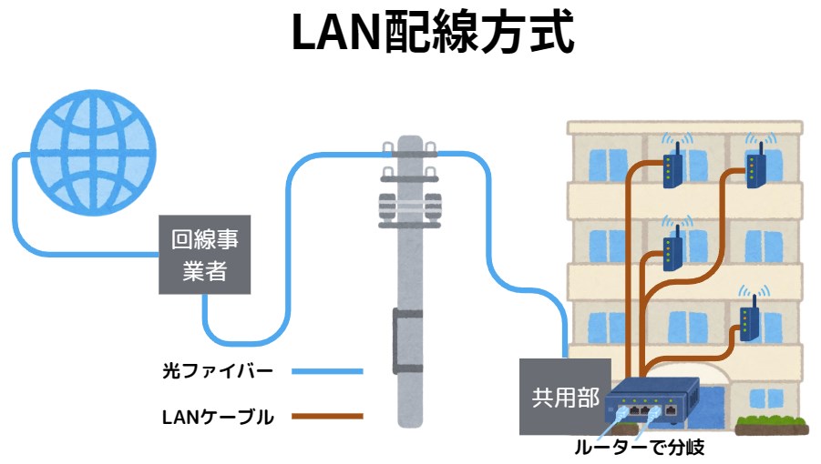 e-mansionの速度を理解するには、まず配線方式を知ることが重要です。マンションインターネットには主に以下の配線方式があります: