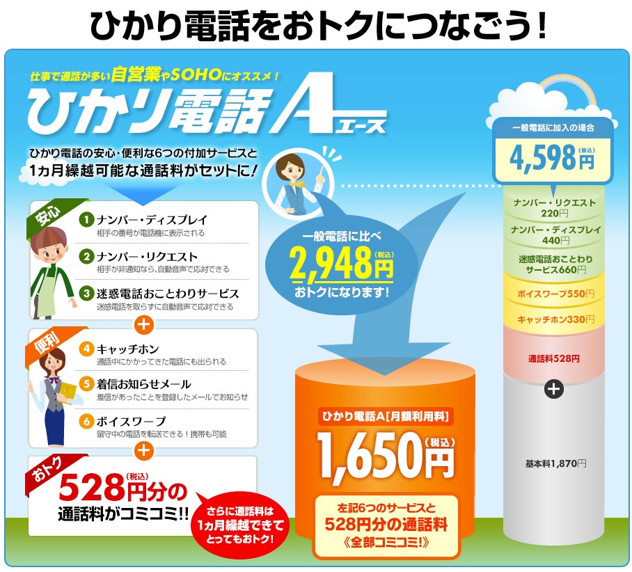 - ひかり電話A(エース): 1,650円/月