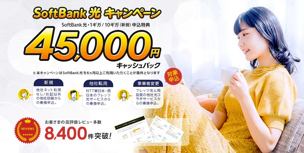 | ソフトバンク光 | 無料WiFiルーターレンタル(最大6ヶ月) |