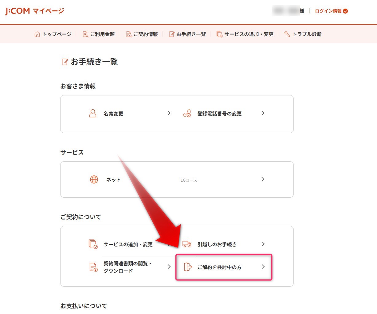 - 「各種お手続き」を選択する