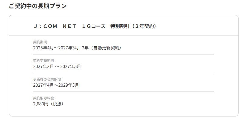 例えば、2023年9月に2年契約のプランに加入した場合、2025年8月~10月が更新期間となり、この間に解約すれば契約解除料金がかかりません。