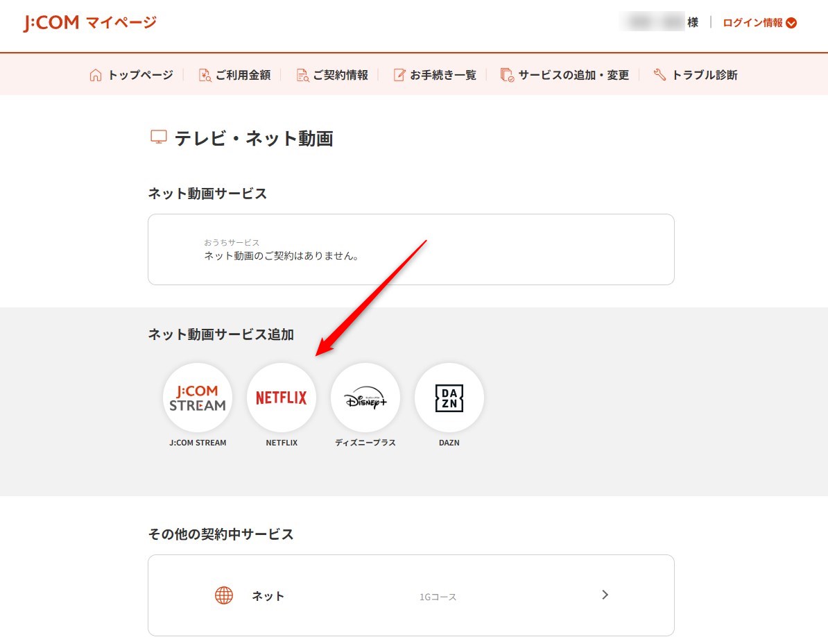 Netflixプランをこれから追加する場合はJCOMマイページから申込みます
