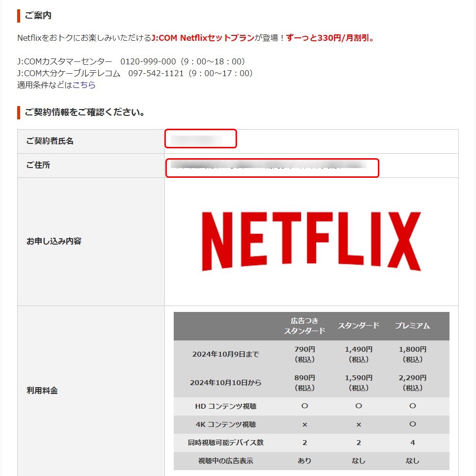 - Netflixサービスの月額利用料は、その他のJ:COMサービスと合算しての請求となります。