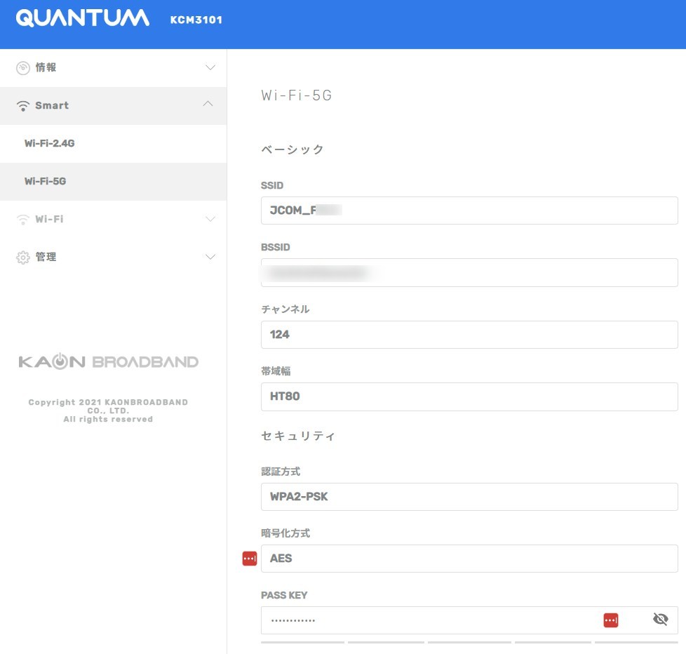 Wi-Fi-5.0GのSSID セキュリティ