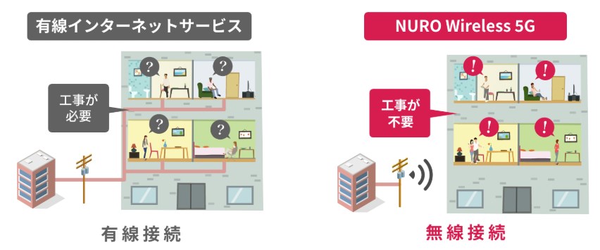 集合住宅の近くにNURO5Gのアンテナが設置され、そこから無線接続することになります。