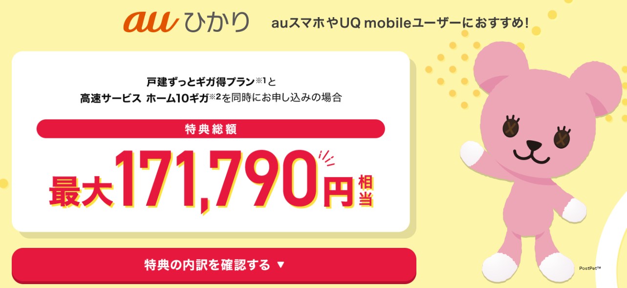 | auひかり ホーム10ギガ | 7,018円 (税込)~ | 3年 (自動更新) |