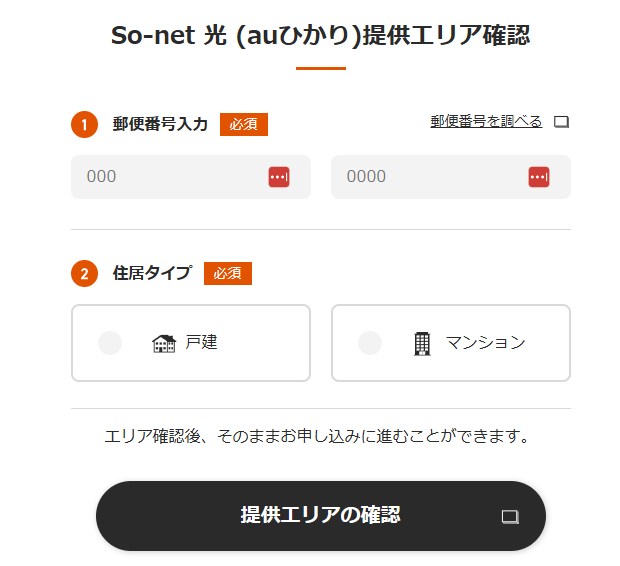 - 再度、So-netやauひかりの公式サイトで、ご自身のマンションが**「auひかり マンションタイプG」**の提供エリアであることを確認します。