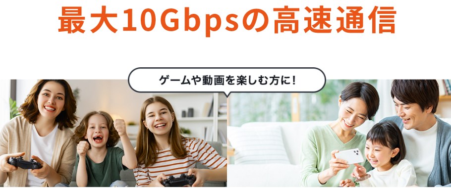 - 戸建てにお住まいの方: **「戸建てFTTH10ギガ」**プランなら、オンラインゲームや高画質動画もストレスフリー。