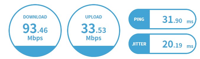 1日を通してスピードテストはこれくらい。Webページ更新時にちょっとだけ待たされる事が多かった。
