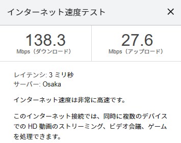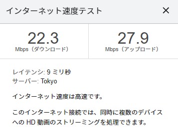 5G環境での使用ですが、うちの場合は以上のような結果で、4G接続のdocomo home5Gと大差ない結果になりました。