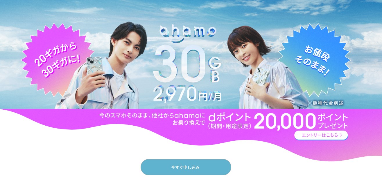 ※キャンペーン内容は予告なく変更される場合があります。 ※最新のキャンペーン情報はahamo公式サイトでご確認ください。