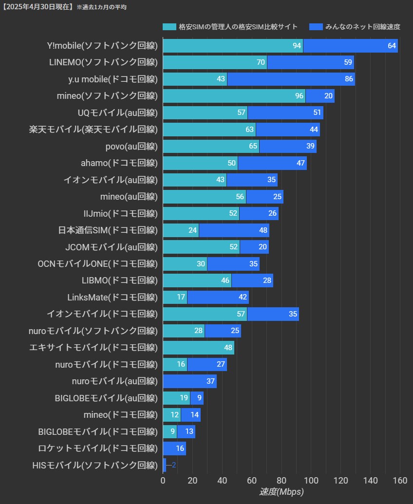 昼休み時間帯(12時〜13時)は企業や学校などでスマホを利用する人が増えるため、最も通信速度が低下しやすい時間帯となります。それでも平均30Mbps以上の速度が出ていれば、日常使用では大きな問題は感じないでしょう。