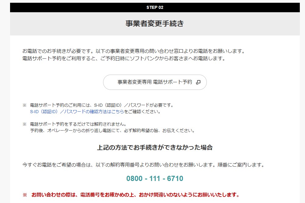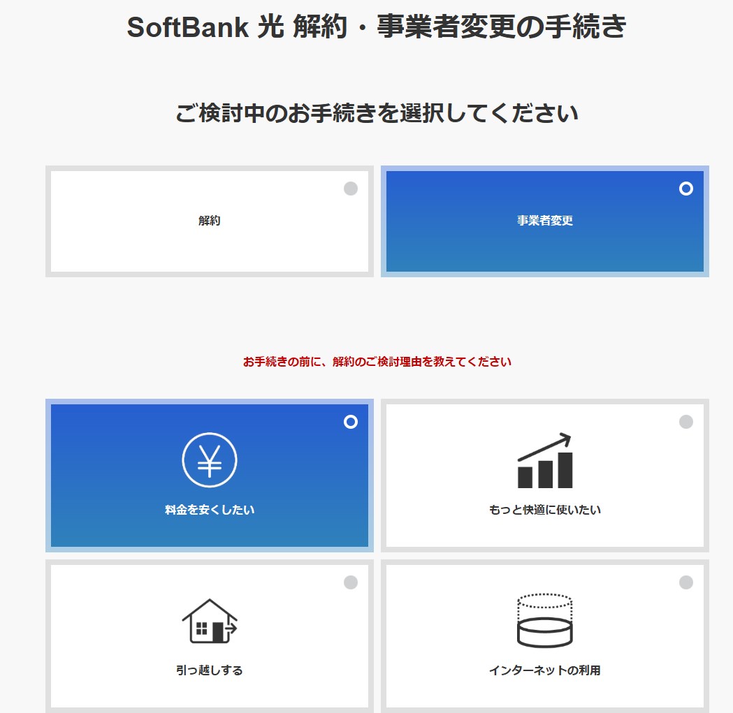 - アクセス方法: ソフトバンク公式サイト > インターネット > サポート > 解約・撤去 > ソフトバンク光解約