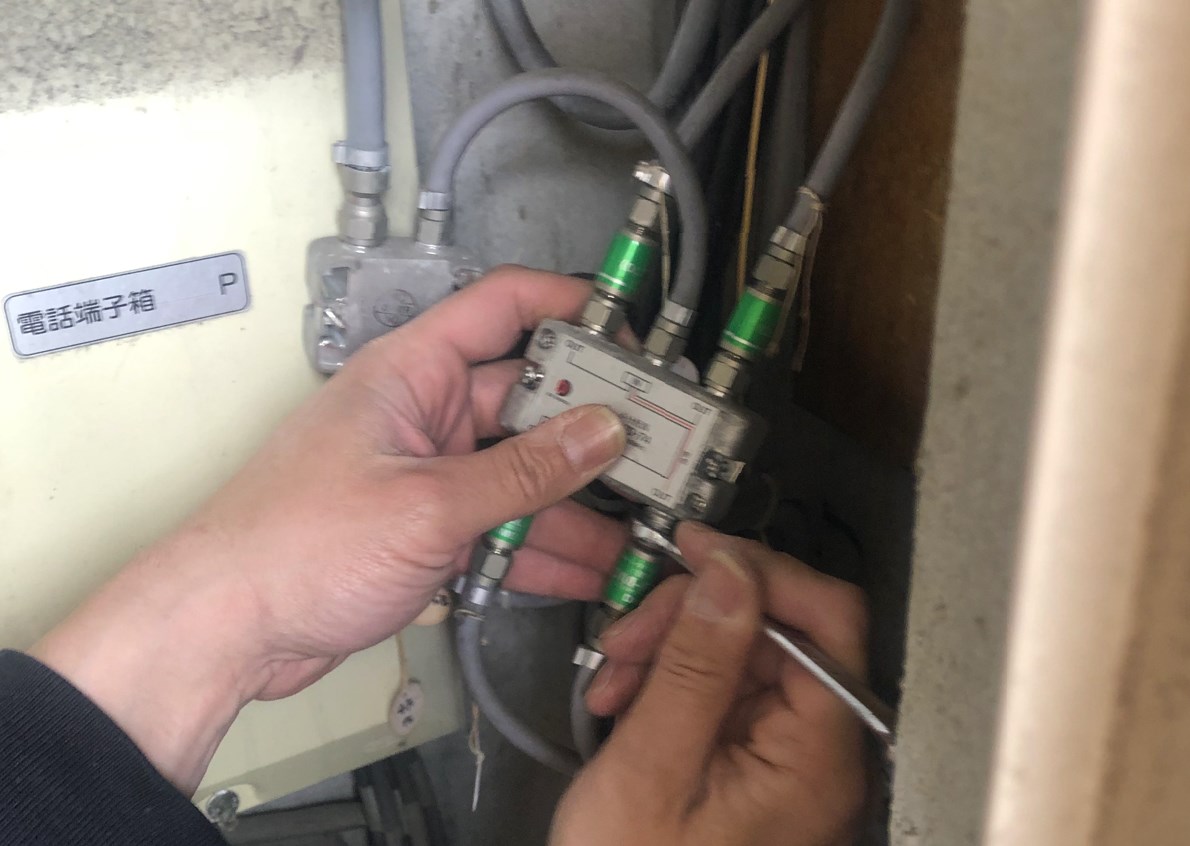 ただし、室外の同軸ケーブルの分岐でハイパスフィルターが設置されているため、そのままではインターネット回線は繋がらないとのこと。