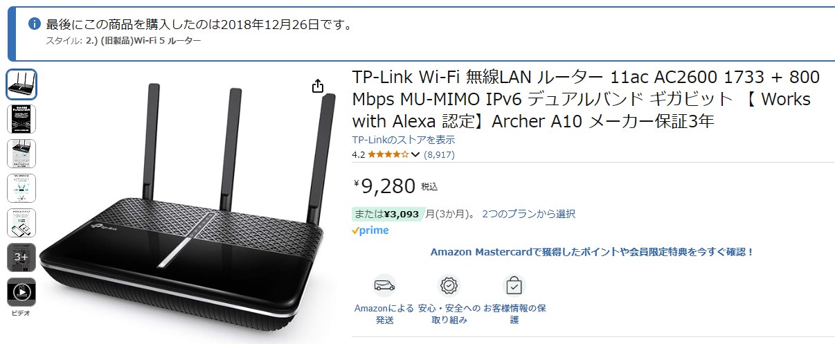 8年前に買ったもので、Wi-Fi 5規格です。IEEE 802.11ac