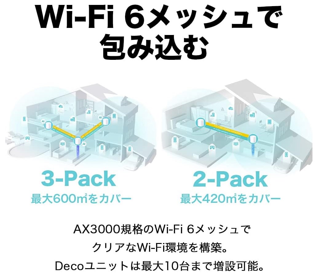 今までの無線LAN中継機では家中に電波を届かせるのはうまくいかない。メッシュWi-Fiを使うことで広く安定して電波環境が実現できるようです。