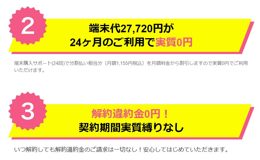 ただし、通信端末は実費が必要なのであまりお得とは言えません。