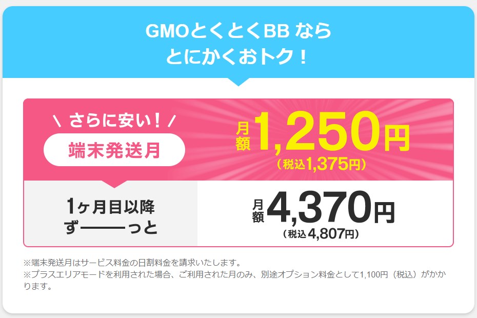 GMOとくとくBB 4,370円 縛りナシ キャッシュバック 31,000円