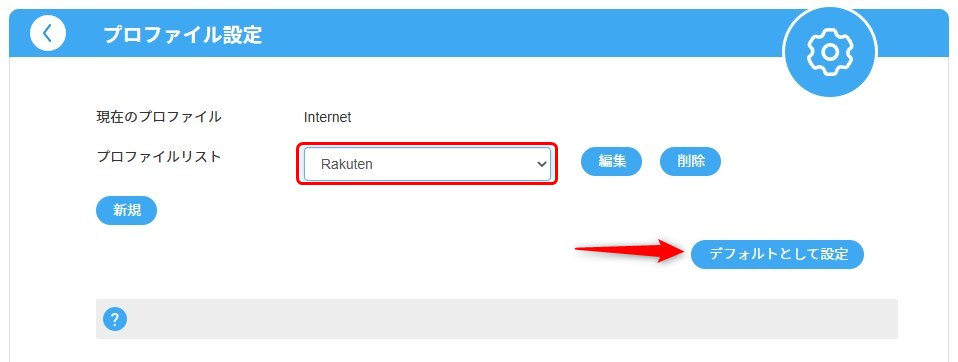 プロファイル設定の画面に戻るので、今作成したプロファイル「Rakuten」をプルダウンから選択します。